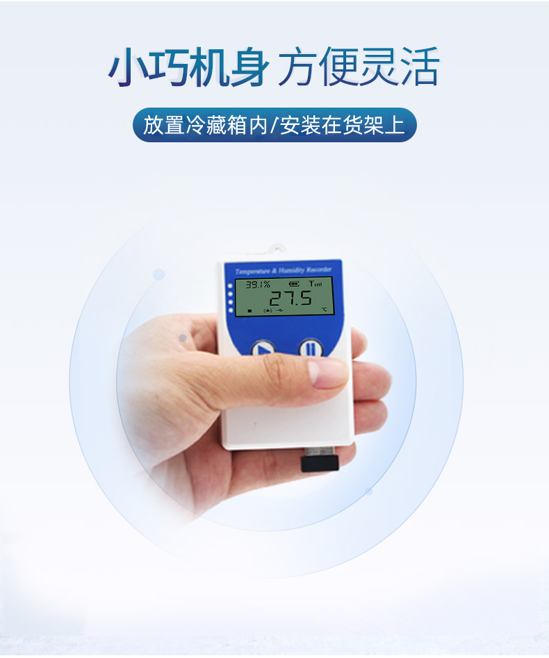 為方便各種場景的使用,智能溫濕度記錄儀分為內(nèi)置探頭型和外延探頭型,內(nèi)置探頭型適用于普通環(huán)境使用,外延探頭型適合在高濕度的場合使用,探頭線可延長至30m。