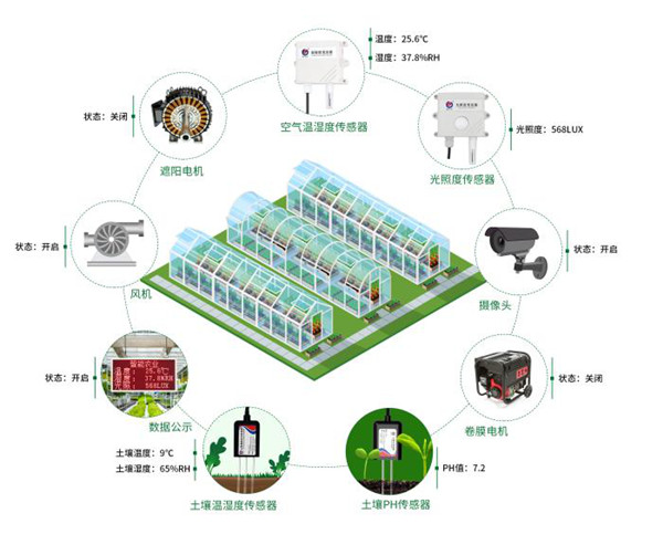 建大仁科推出的智慧農業(yè),可以在種植園區(qū)廣泛使用,其功能和作用非常全面。智慧農業(yè)通過終端傳感器:氣象百葉盒,土壤PH/電導率傳感器,風速風向傳感器等,采集溫室內的空氣溫濕度、土壤水分、土壤溫度、二氧化碳、光照等實時環(huán)境數(shù)據(jù),通過環(huán)境監(jiān)控主機傳輸?shù)江h(huán)境監(jiān)測云平臺。